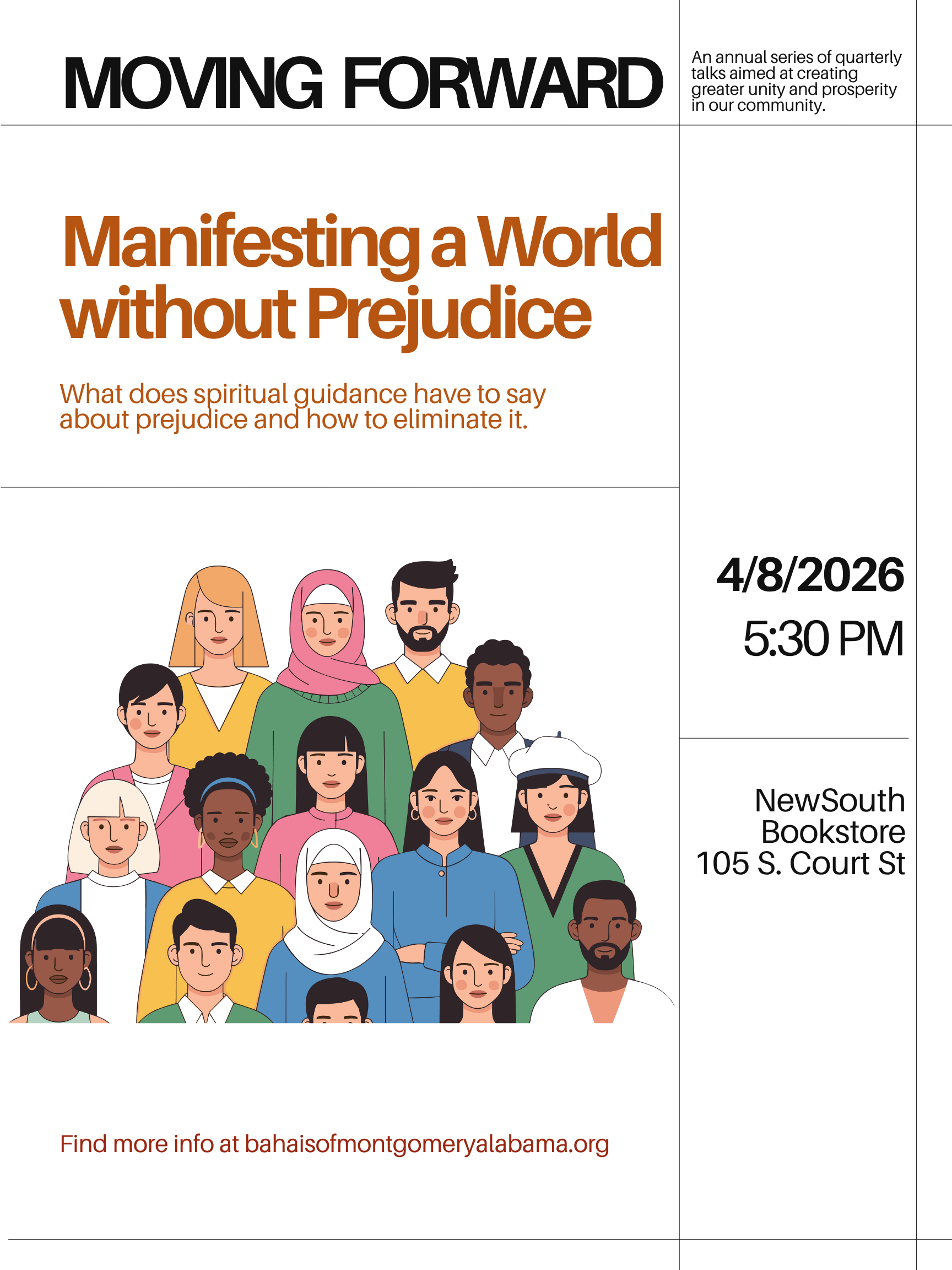 The Baha’i community facilitated a reading of guidance on building a world without prejudice. The NewSouth Bookstore provided continued support for this gathering.